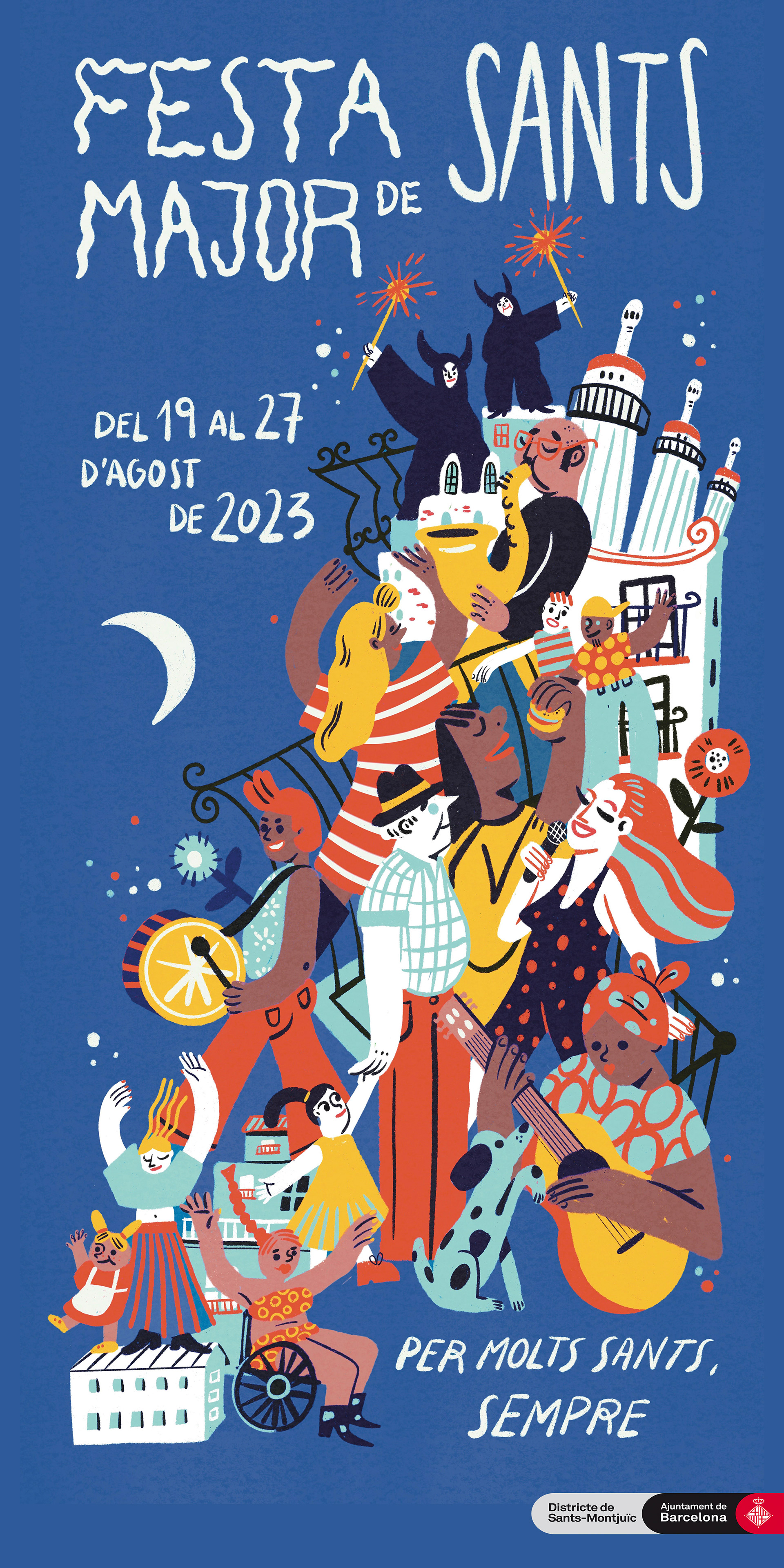 Poster for the festivities of the neighborhood of Sants in Barcelona.